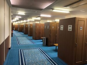 風呂場の脱衣所は中の上レベルか。浴室には洗い場が30席もあり、六角形の大きな湯船が真ん中にドンとある珍しいレイアウトで、私も初めて見た。椅子と桶はヒノキ?の木製、というのもゴルフ場の風呂場では珍しく、こだわりを感じる。