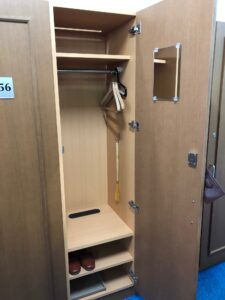 ロッカールームは、27ホールの大型ゴルフ場らしく広々としてキレイ。ロッカー自体もちゃんと木製で作りもしっかりしており、合格点!
