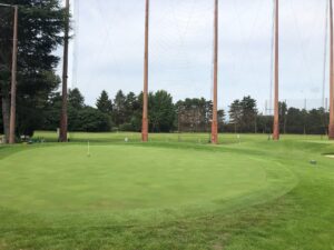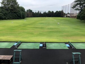 練習場も、ひと通りちゃんとそろっている。ドライビングレンジは250ヤードと十分な距離があり、マットではあるが17打席ある。その横には、バンカー付きの広いアプローチ練習場も完備していて、スリクソンのアプローチ専用球が用意されている。