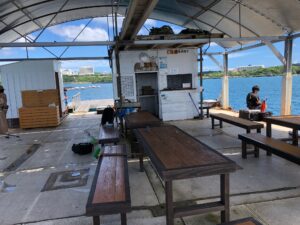 「美ら海水族館」にほど近い本部(もとぶ)にある『海生活』を事前にネットで予約した。釣り道具からエサや仕掛けまで全てレンタルして、イカダへの渡船代を含めて、日本人なら9千円程度とリーズナブルだ。(外人向けはもう少し高く、二重価格制なのもグッド!)