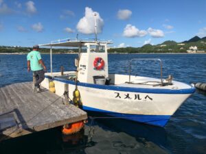 エサもなくなったので、帰りの船を呼んで初の沖縄釣行は終了した。帰りたくなれば、一人だけのためでもいつでも迎えに来てくれるのはありがたい。