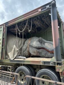 人気の「ダイナソー・サファリ」も15分ほどで乗れ、しかもすぐに2回続けて乗れた! 登場する恐竜自体は大したことないが、テーマパークのアトラクションのように決まったレールの上を走るのではなく、実際の大型ジープで悪路を走るので、迫力はある。
