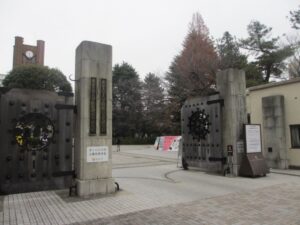駒場の校門前で・・・