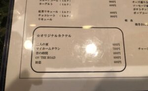 楽しみにしていたオリジナルカクテルも確かにあったが、5種類だけと意外に少なく、普通の酒が大半だったのはやや意外だった。その中から「二人の夏」と「マイホームタウン」を飲んでみた。
